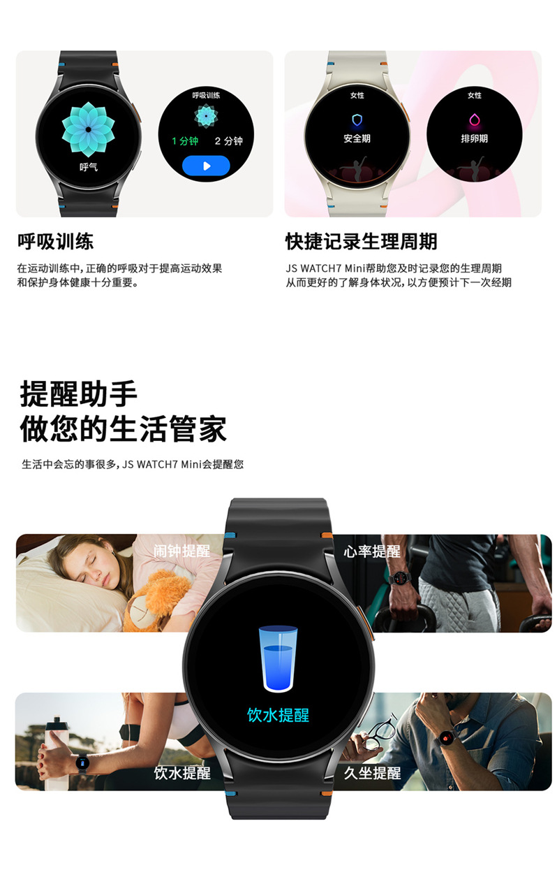 Funciones: Conteo de pasos, monitoreo de la frecuencia cardíaca, entretenimiento social, recordatorio inteligente, monitoreo del sueño